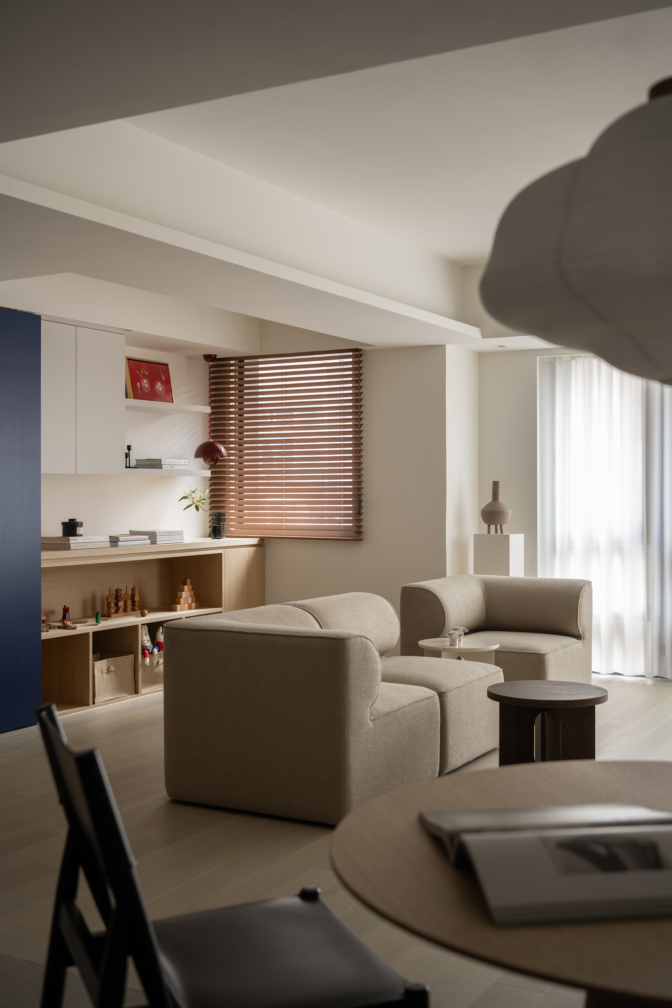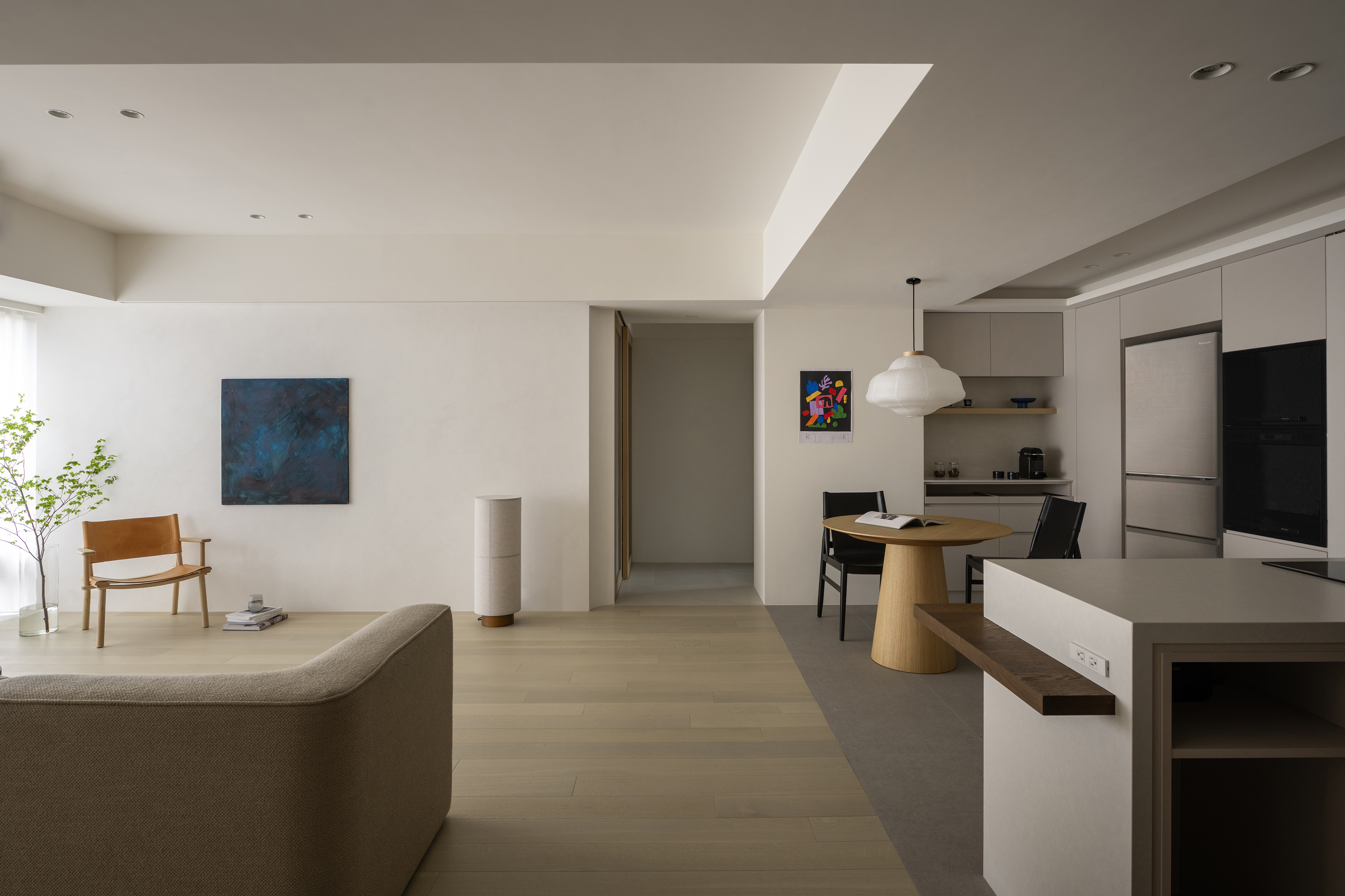 客、餐廳偌大的公共空間,是全家最熱絡的活動場域,同時安插了三處收納區:玄關和餐廳收納室、廊道收納櫃,方便屋主分類在家中各處的物品。