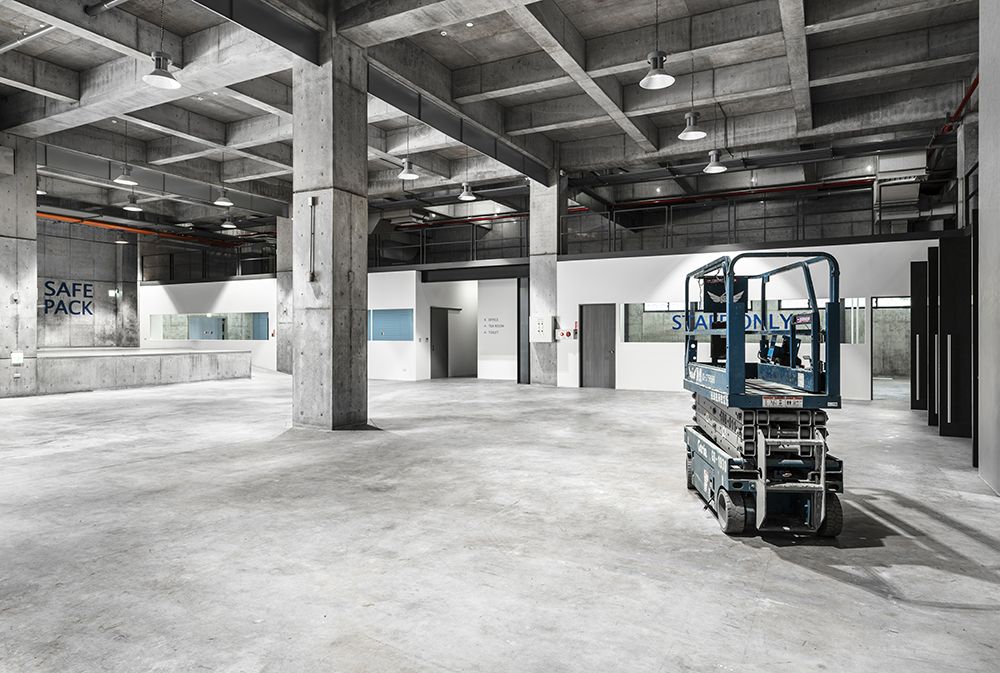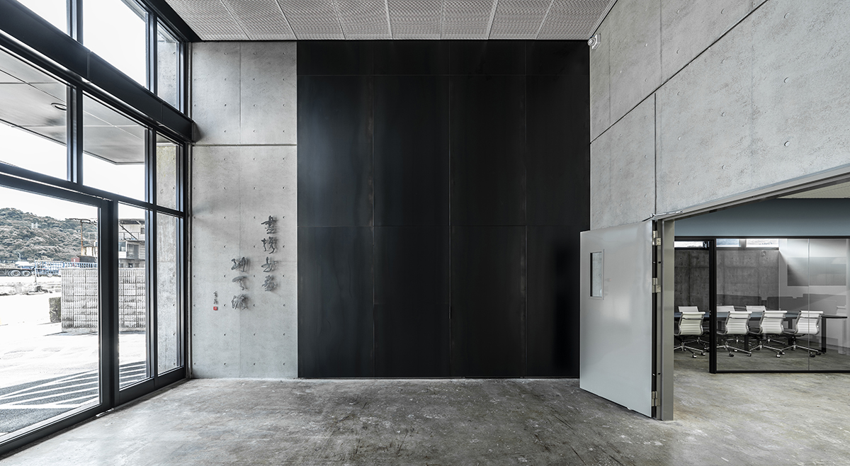 公司企業總部為國內少見的清水模建築物,混凝土簡練的美感與內斂的粗曠感,使得空間本身在尚未進行任何人工的修飾前,即呈現獨有的個性。