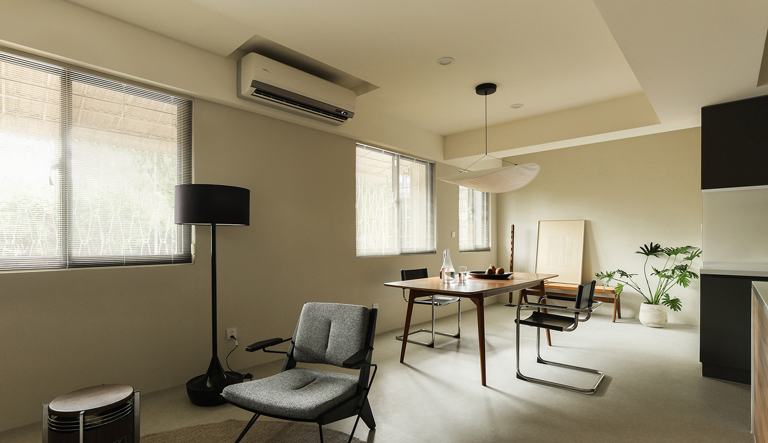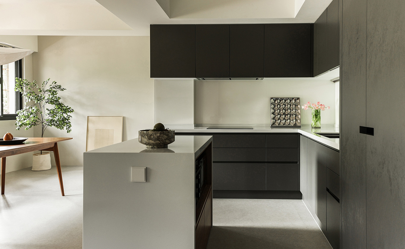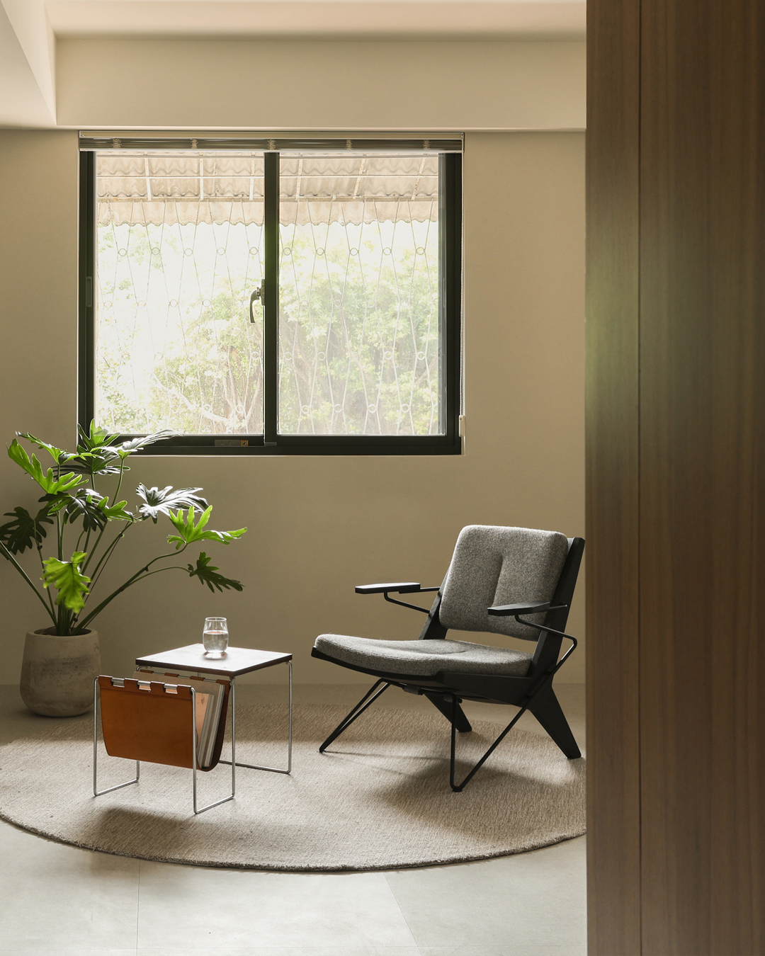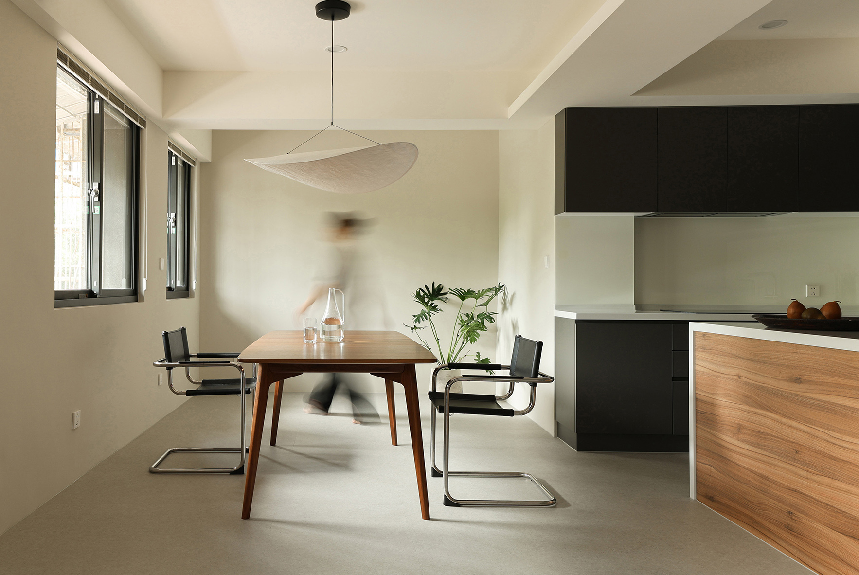 長期居住在美國的夫妻,搬回台灣定居,決定把位於台北市青年公園樹海第一排、充滿許多兒時回憶的48年老宅重新整理。原本是雙拼房型,格局上的先天不良,造成屋內陰暗並有嚴重壁癌。如何讓空間變得舒適居住,是設計師的首要任務。格局調整後,將公/私領域區分清楚,同時讓充足陽光恣意地遊走於其中,且通風良好;重新賦予了房子最溫暖、熱情的個性如同屋主夫妻。兩人平日喜愛宴客,寬敞舒適的公共區以及開放式廚房與中島,總讓大家慵懶自在地在此暢談,賓主盡歡!