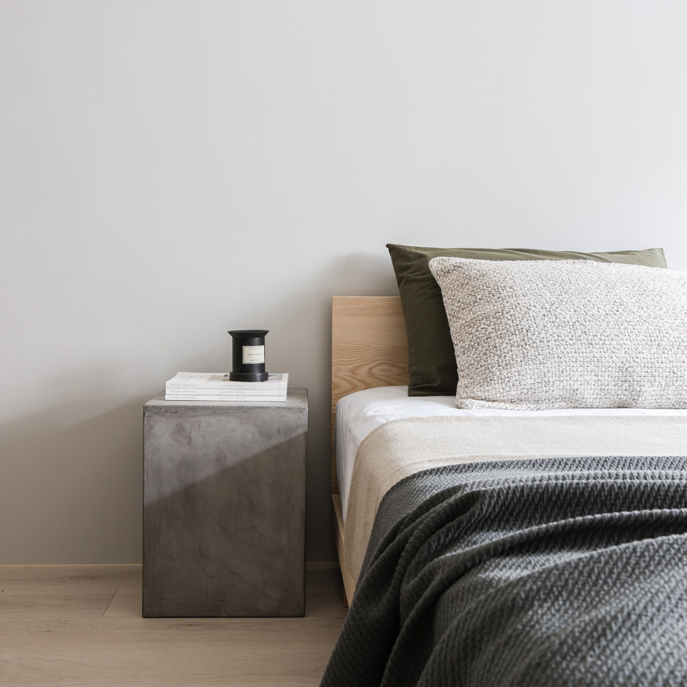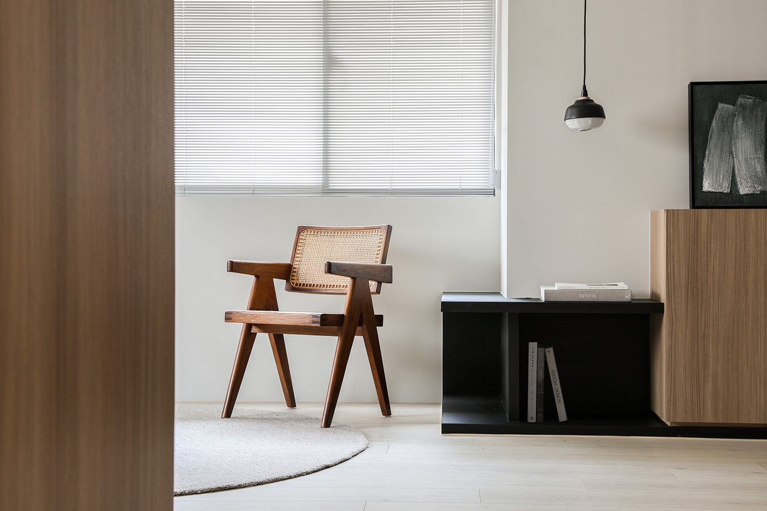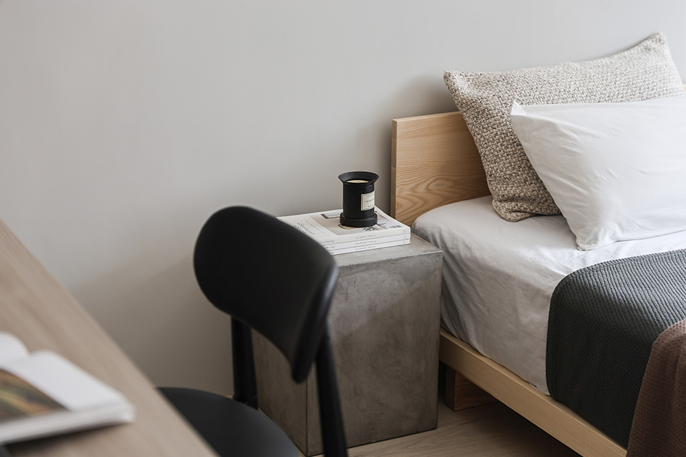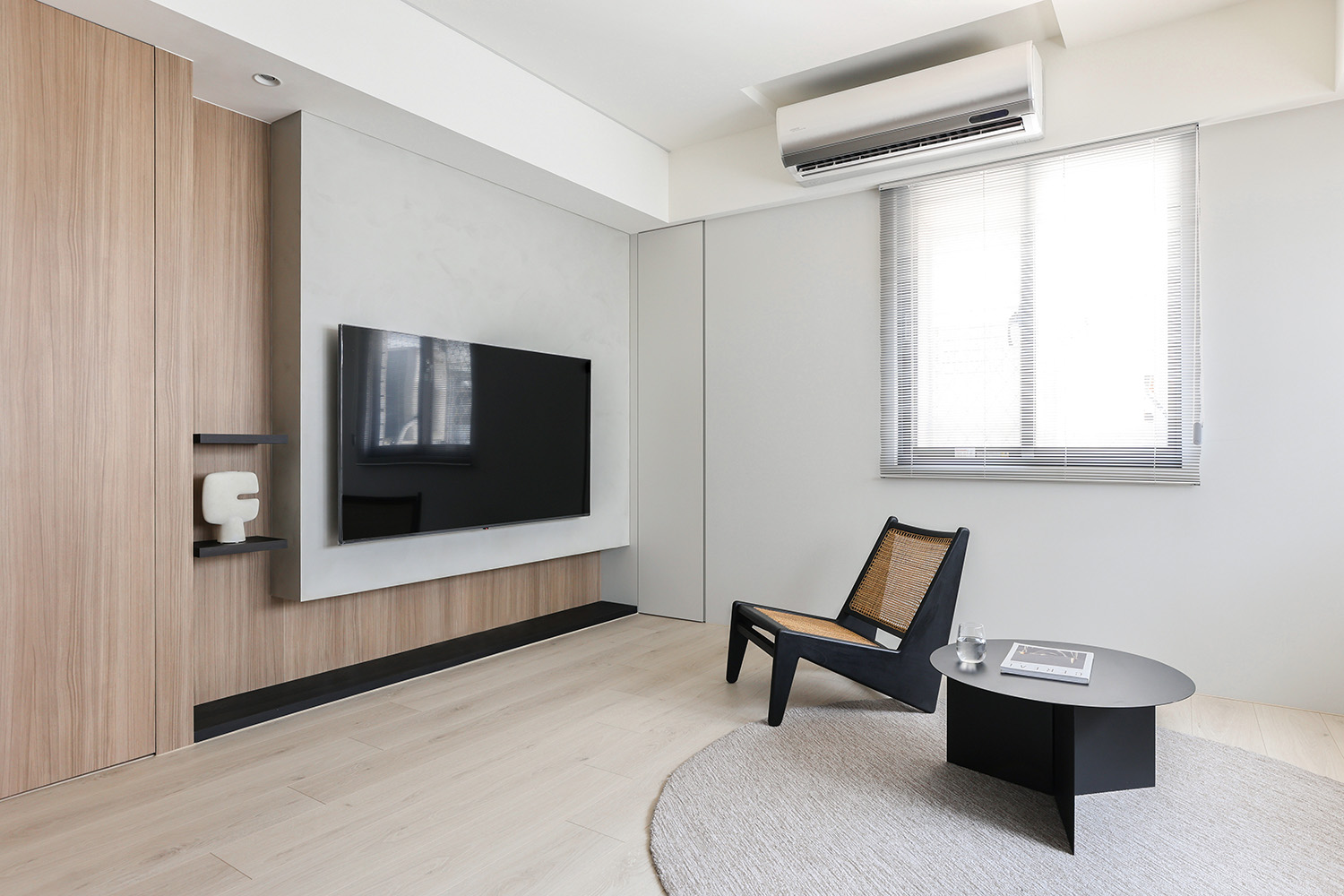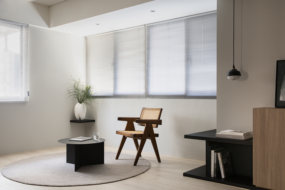此案為新婚夫妻的家宅,因為必須長時間在家工作的生活型態,格外需要安定、舒心的生活環境。以木紋、淺灰及黑色定調居家氛圍,讓彼此不論在公、私領域,身心靈都能處於最放鬆的狀態。