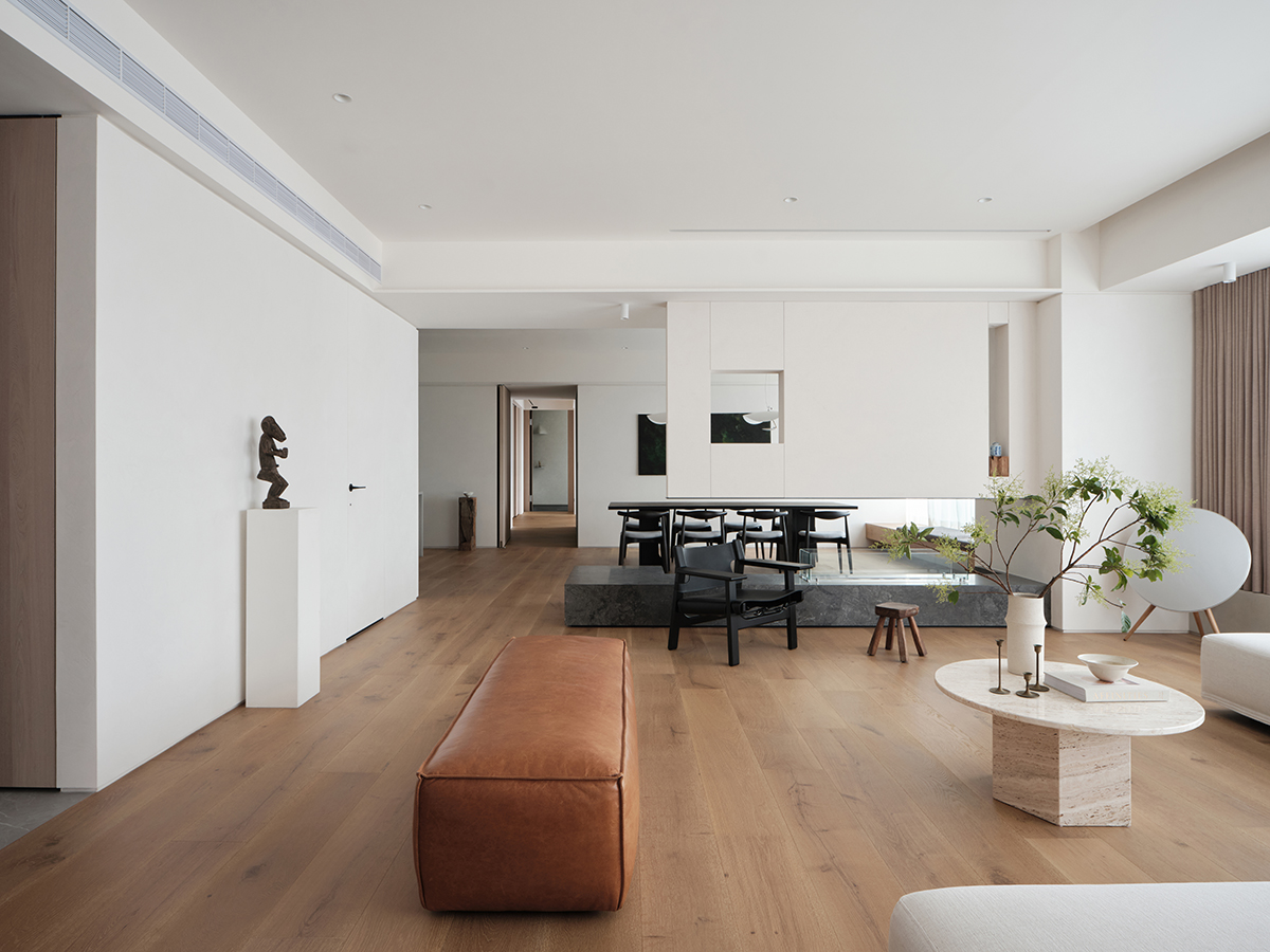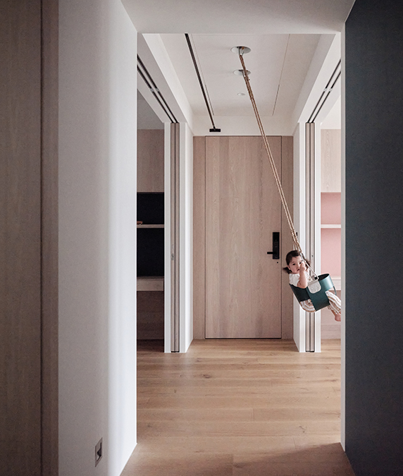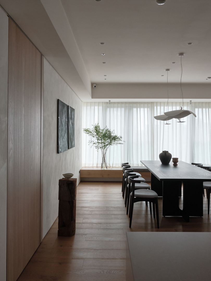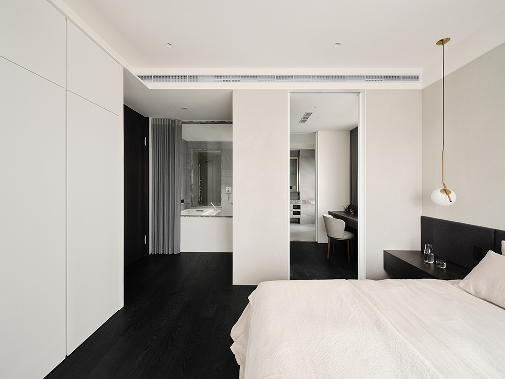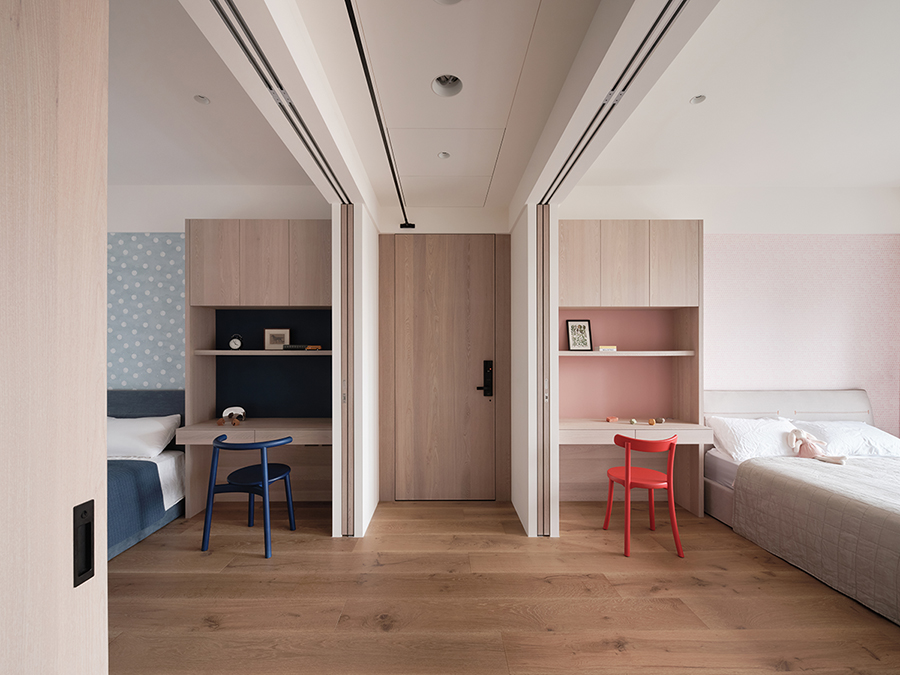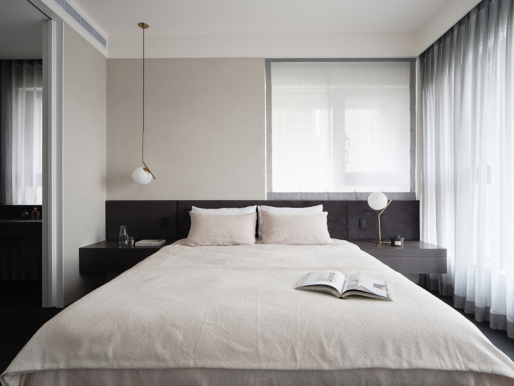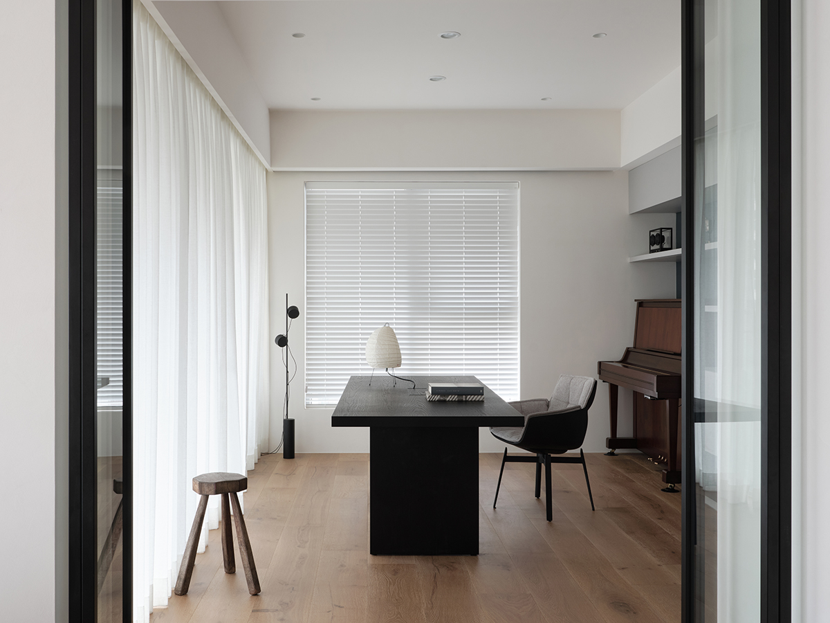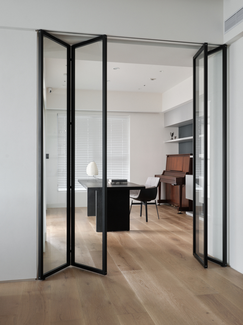 平面規劃,著重讓光線滿溢空間的各個角落。運用活動式門片的彈性,增加空間自由度,既提供隱私也讓喜好視野無阻的屋主,感受開闊的空間配置。