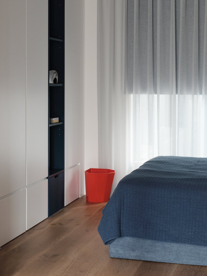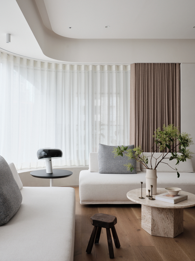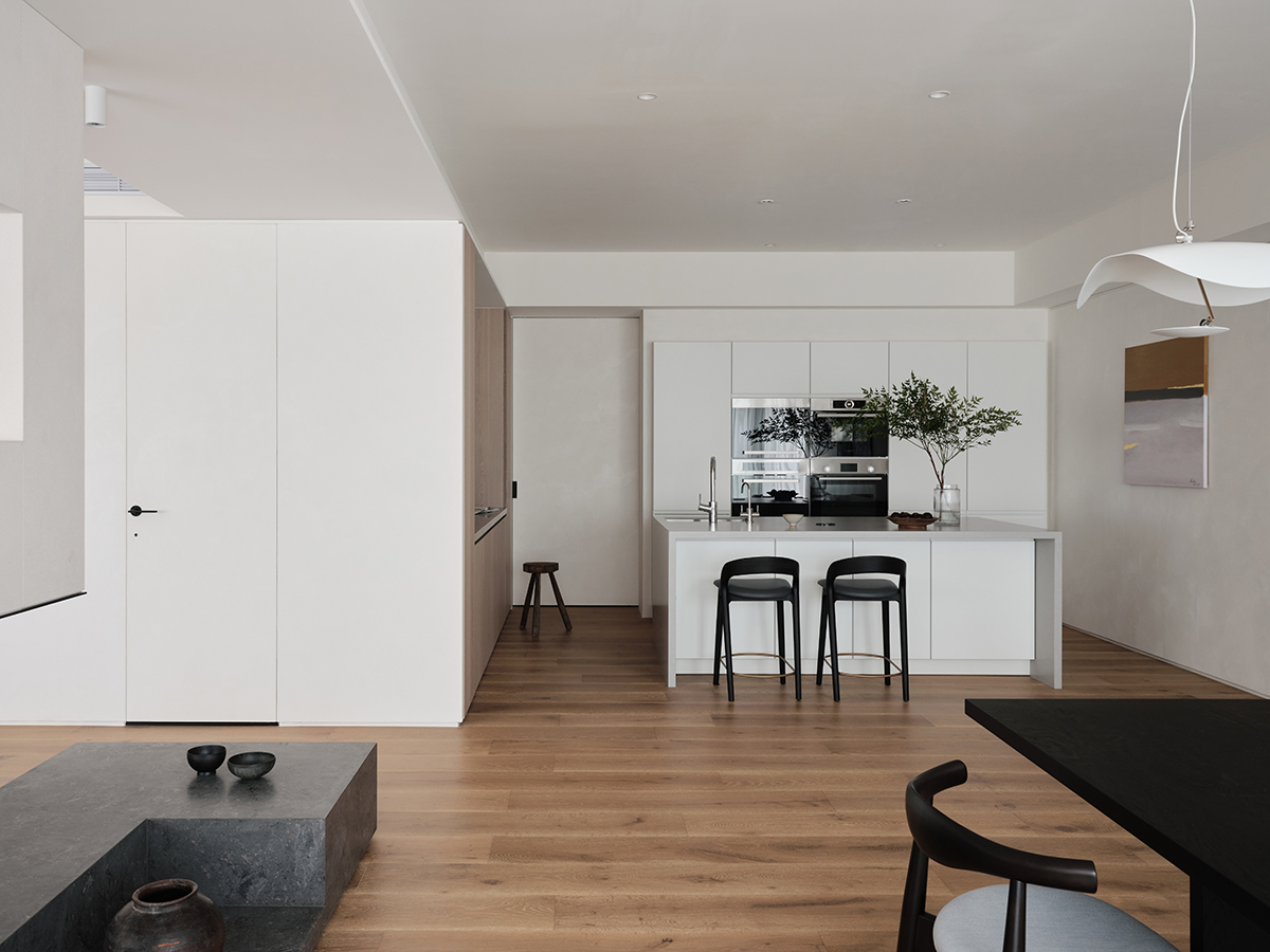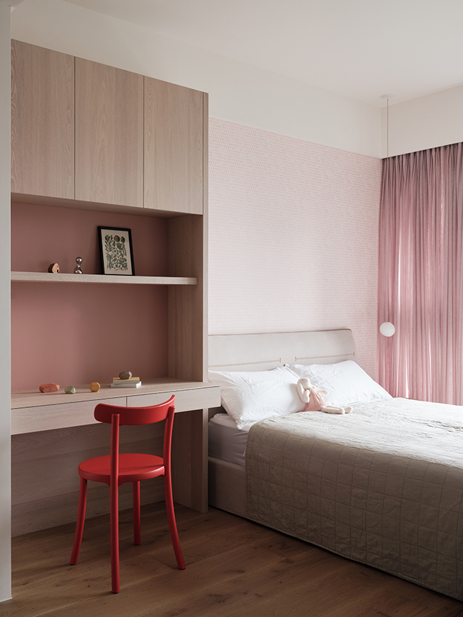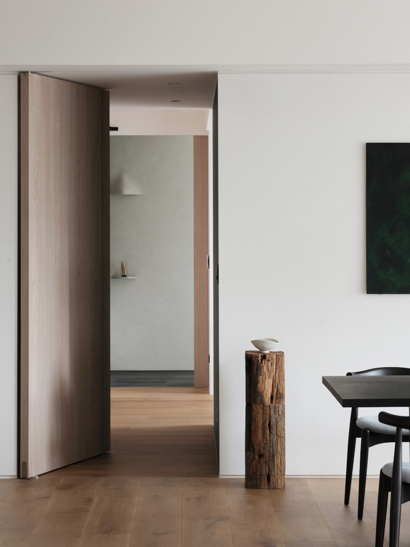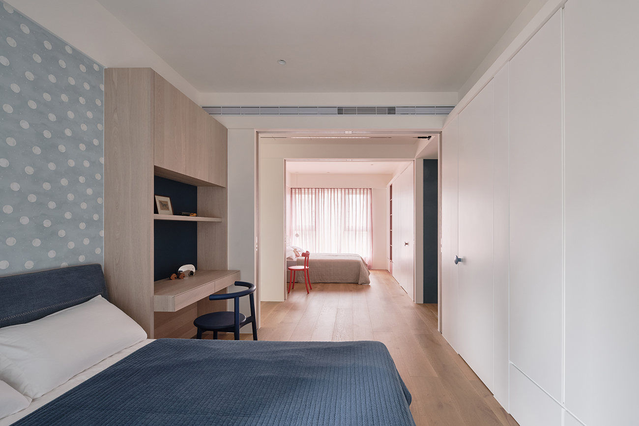 平面規劃,著重讓光線滿溢空間的各個角落。運用活動式門片的彈性,增加空間自由度,既提供隱私也讓喜好視野無阻的屋主,感受開闊的空間配置。