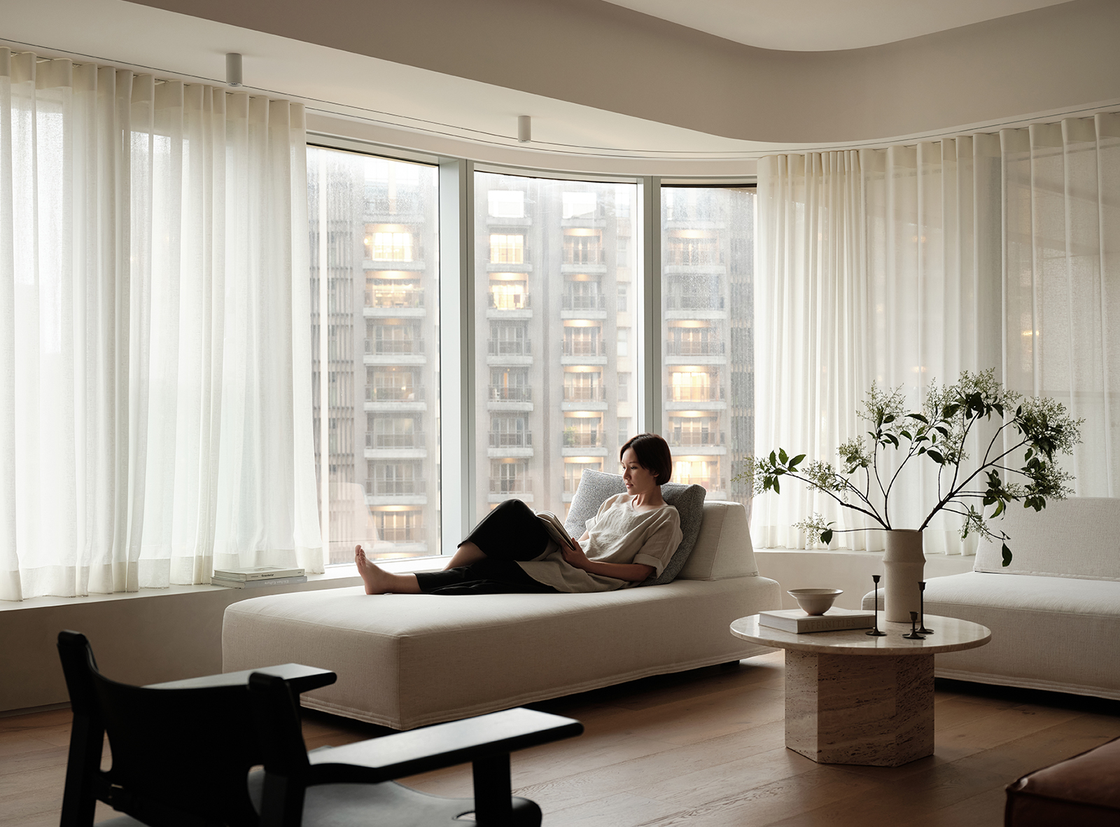 玻璃帷幕的大樓設計,使得屋內光線充足,是本案得天獨厚的先天條件。