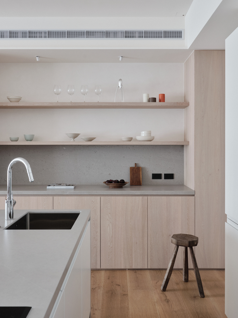 和諧、低彩度、天然的材料選擇,營造場域內的寧靜氛圍。緩慢地在時間長河裡過著日常,此時無聲勝有聲。
